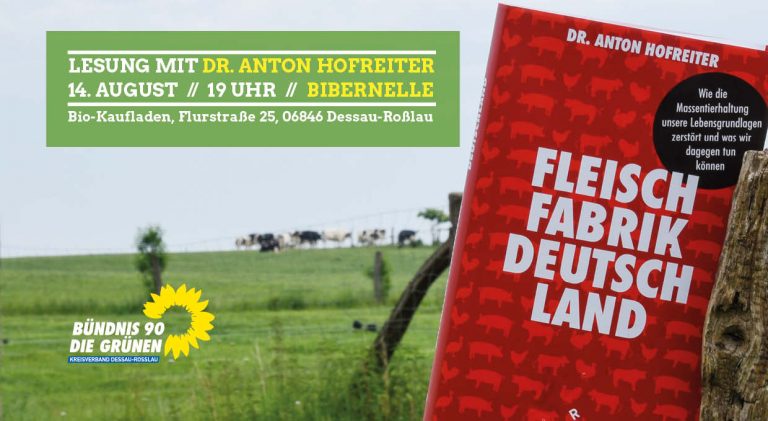 „Fleischfabrik Deutschland“ 14. Juli 20178. April 2024 Eine Lesung mit Dr. Anton Hofreiter 14. August 2017 / 19 UHR / BIBERNELLE Bio-Kaufladen, Flurstraße 25, 06846 Dessau-Roßlau Die industrielle Massentierhaltung nimmt trotz des Biotrends immer gewaltigere Ausmaße an. […]